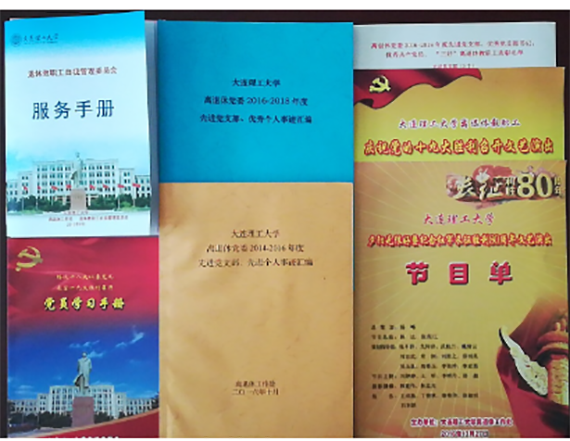 还展示了党建工作一系列档案盒子以及留存的有价值的书籍资料,并赠送了突出大连理工大学365英国上市公司特色工作的《党支部规范化建设指南》、《大连理工大学标注365英国上市公司工作校历》、《大连理工大学365英国上市公司党员学习手册》等资料。