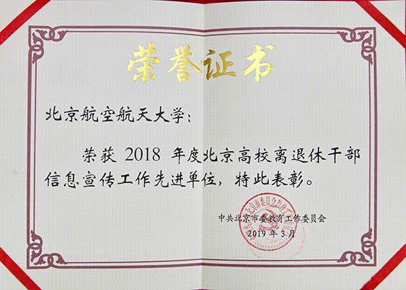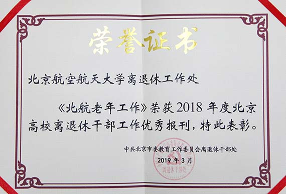 《北航老年工作》刊物荣获“2018年度北京高校365英国上市公司干部工作优秀报刊”。
