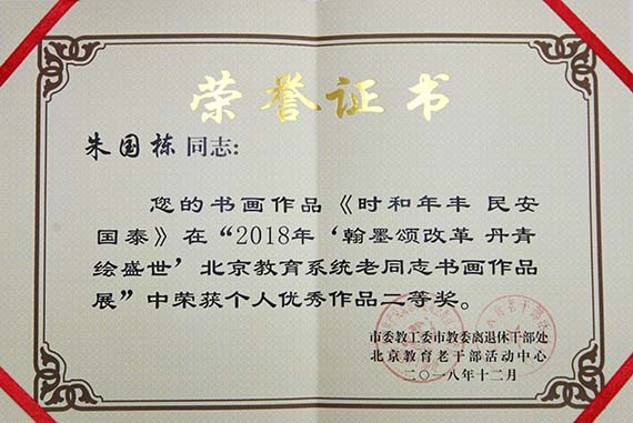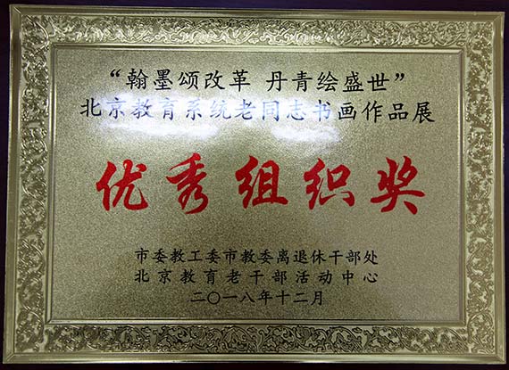 在“翰墨颂改革丹青绘盛世”北京教育系统老同志书画作品展评选中,我校荣获优秀组织奖。