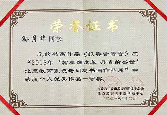 孙月华老师的书画作品《报春含馨香》荣获个人优秀作品一等奖。