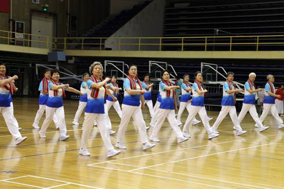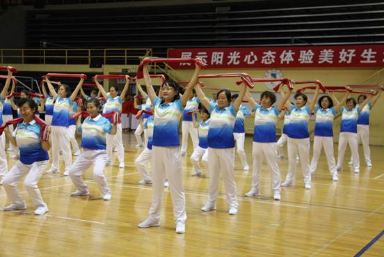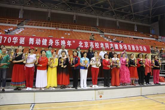 5月29日,“喜迎祖国70华诞,舞动健身乐晚年”——北京高校老同志健身项目展示活动在首都体育学院举行,32所高校的近千名老同志参加展示活动。