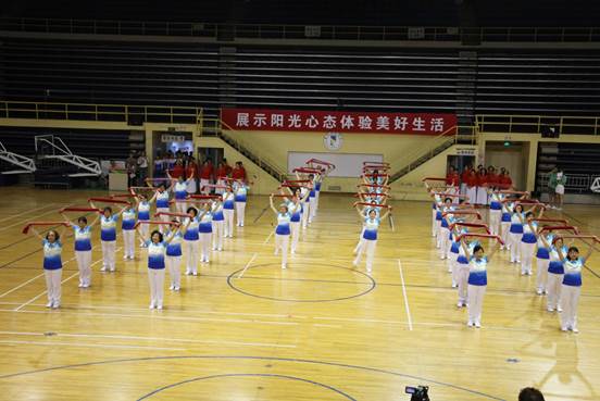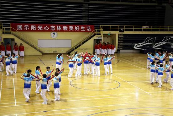 表演现场,大家精神饱满,动作到位,神采飞扬,高质量地完成了健身操表演,获得了评委与全场观众的一致好评和热烈掌声。