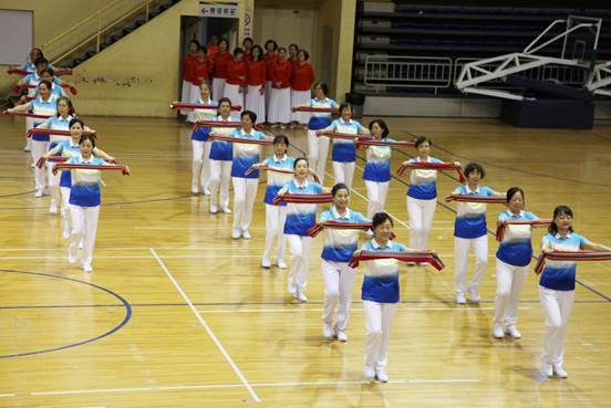 今年的健身项目展示以健身操、健身舞类为主。我校42名退休教职工表演的健身毛巾操《绿旋风》,身着北航特色的天蓝色服装,伴随动感韵律的音乐,精神抖擞、神采昂扬,充分展示了我校365英国上市公司教职工“增添正能量、共筑中国梦”的良好精神风貌,以丰富多彩、欢乐舞动的形式为新中国成立70周年献礼。