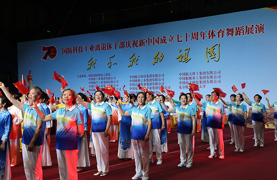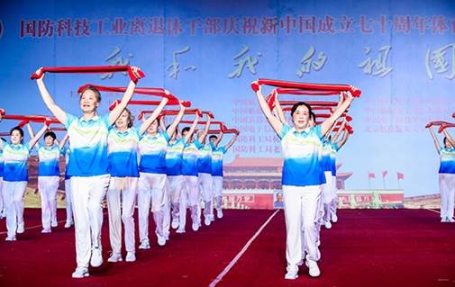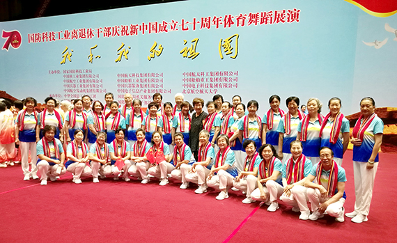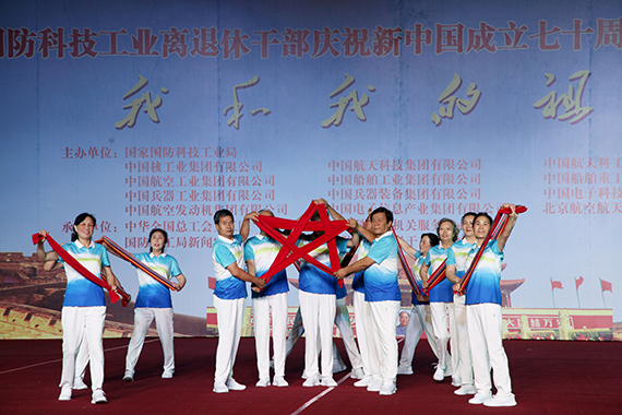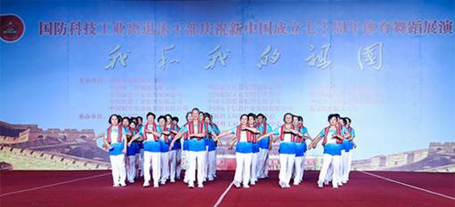 在表演最后摆出“70”、“五星”和“花环”等造型,表达了北航老同志向新中国70华诞献礼的喜悦心情。