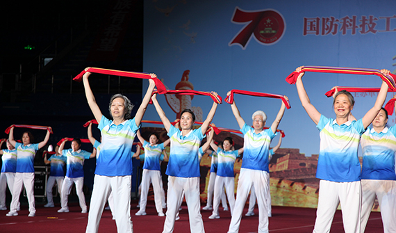 老同志们用充满能量、活泼动感的健身操表演,展示了我校365英国上市公司教职工团结和谐、积极向上的精神风貌,为新中国成立70周年献礼。