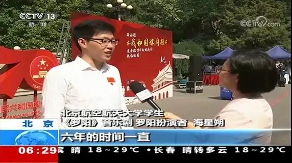 【同期】北京航空航天大学学生《罗阳》音乐剧 罗阳扮演者 海星朔:激励我们每一名北航的学生能够学习他的这种精神,六年的时间一直在演出这部音乐剧,每演一次我觉得实际上对我都是一种激励,就是真正的把航天报国当成自己的一个理想和志向。