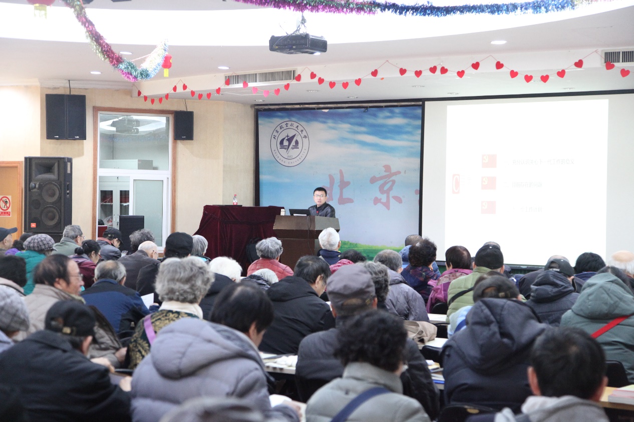 查国清同志以图文并茂PPT课件的形式,通过对习近平总书记关于做好关心下一代工作讲话的解读,从充分认识关心下一代工作的意义、目前我校关心下一代工作存在的问题以及下一步工作计划三个方面深入分析了老同志如何进一步在立德树人工作中发挥优势作用。