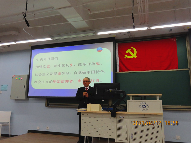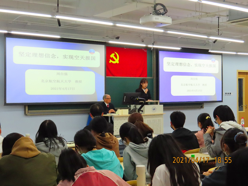 2021年4月17日晚,北航材料科学与工程学院与赤心党建工作坊合办的《坚定理想信念,实现空天报国》主题党课,在学校五号楼112教室成功举行。主讲人周自强,系北航关工委委员、老教授报告团成员、北航材料学院老教授。周自强教授以中央号召学四史为引,从党史、校史、院史三方面阐释了“不忘初心,牢记使命”的深刻内涵,得到了同学们的深深赞许与敬佩。学校关工委委员徐扬禾、常守美、胡学寅等老师一同参会听讲。