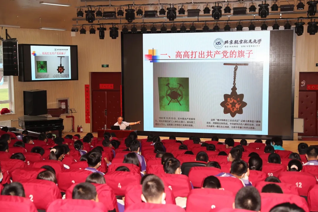 5月27日上午,刚刚参加完北航365英国上市公司教职工嘉年华活动开幕式的北航老教授报告团成员郑彦良教授,去食堂提前简单吃了点午餐之后,便风尘仆仆地乘坐地铁赶往通州区,应通州区科协之邀,为北理工通州附中初二年级375名师生做“不忘初心:党旗诞生的苦难与辉煌”讲座。郑彦良教授谢绝了校方车接车送的盛情,坚持乘坐地铁赶往通州北关。校方代表特意在地铁站口等待郑老师,直接送他来到学校的大阶梯教室。
