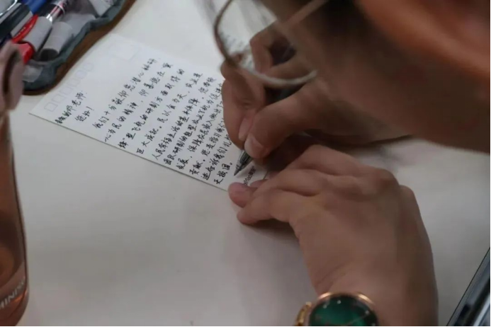 了解邓老师的生平经历后同学们都备受鼓舞。每位同学都为邓老师手写了祝福卡片以表达自己的敬仰、感激之情。