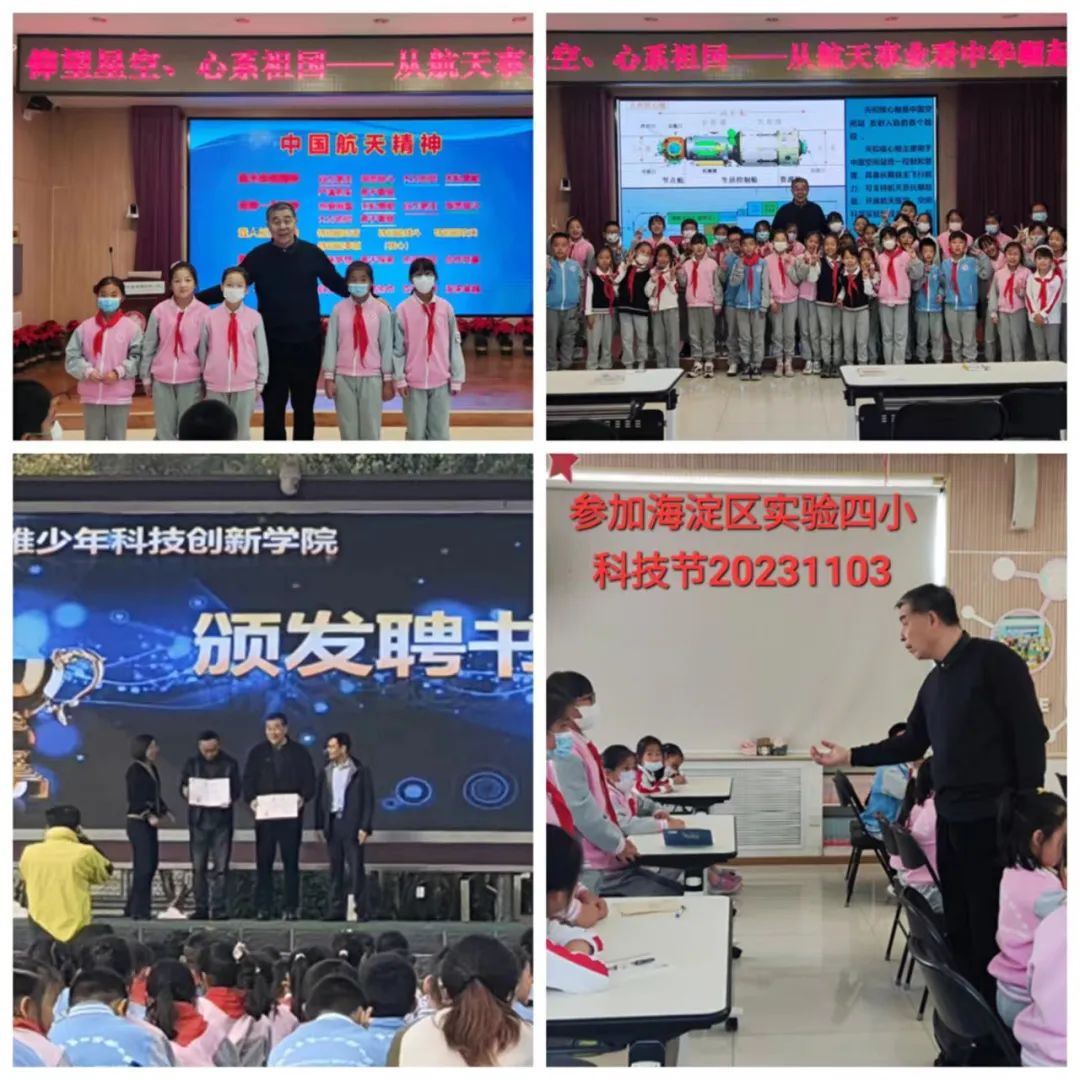 11月2日晚上,韩老师乘飞机返回北京。11月3日一早,便乘车赶往海淀区第四实验小学,作为专家顾问,参加主题为“科技筑梦新征程 创新成长向未来”的校园科技节。在活动中,韩老师做《仰望星空 心系祖国》主题讲座,进行航天知识科普,引导同学们将浓浓爱国情、拳拳报国志融入到科技创新中,将来为祖国的科技事业发展贡献力量。