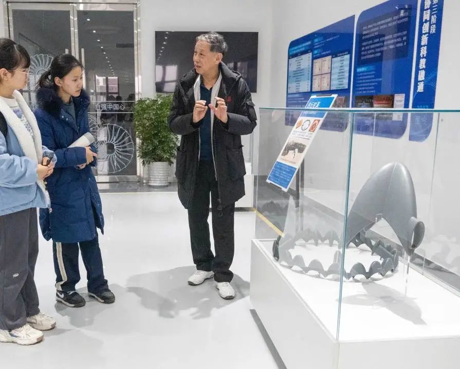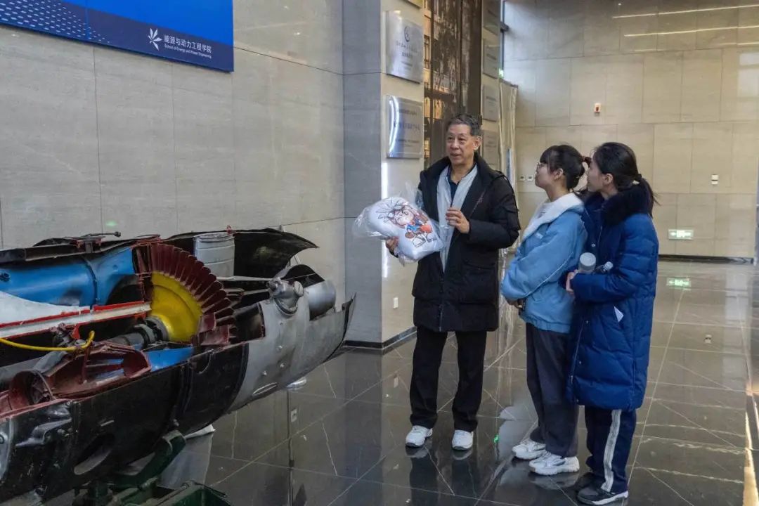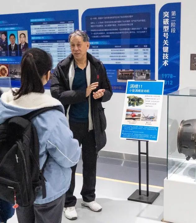 在采访活动结束后,陈教授热情不减,带领我们到F3的心动科教中心和F1大厅展区参观,既为我们讲述了学院历史和航发知识,又生动地向我们展示了讲解技巧、科普方法。