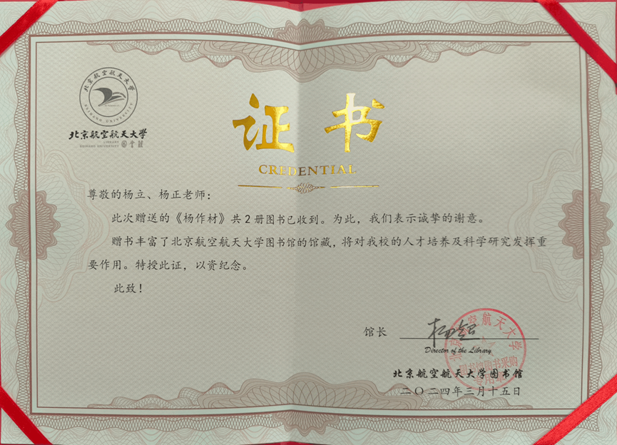 老教师们虽已退休,但仍心系学生们的成长,盼望他们能像杨作材老先生一样,成为国家的栋梁之才。本次赠书活动不仅是北航退休老教师对于学校的回馈,更是我校关心下一代工作围绕传递红色血脉、助力培英育才的生动实践。