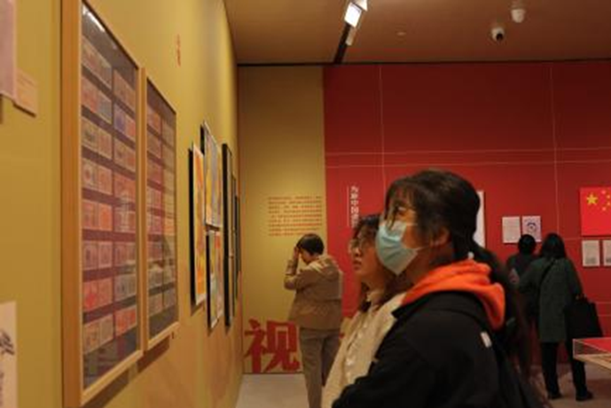 师生党员、入党积极分子在高志红老师的介绍下,认真细致地观看展览中呈现的珍贵历史展品。从新中国成立初期的工业设计、宣传海报,到改革开放后的城市规划、商业品牌,再到如今的数字化设计、智能科技,充分了解新中国设计的演变。