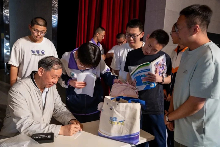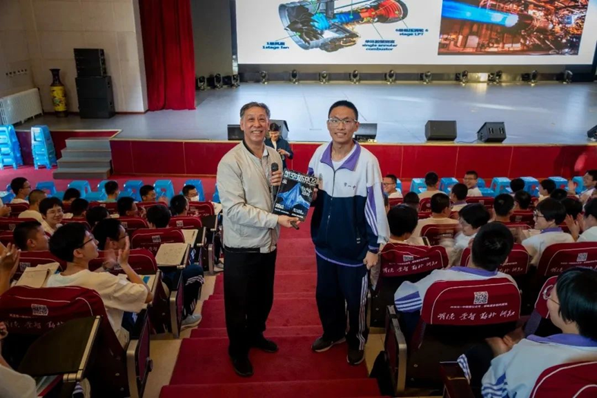 讲座后,他向在场的同学们赠送《航空知识》杂志和亲笔书写的高考寄语明信片,鼓励他们树立空天报国、心系蓝天的崇高理想。