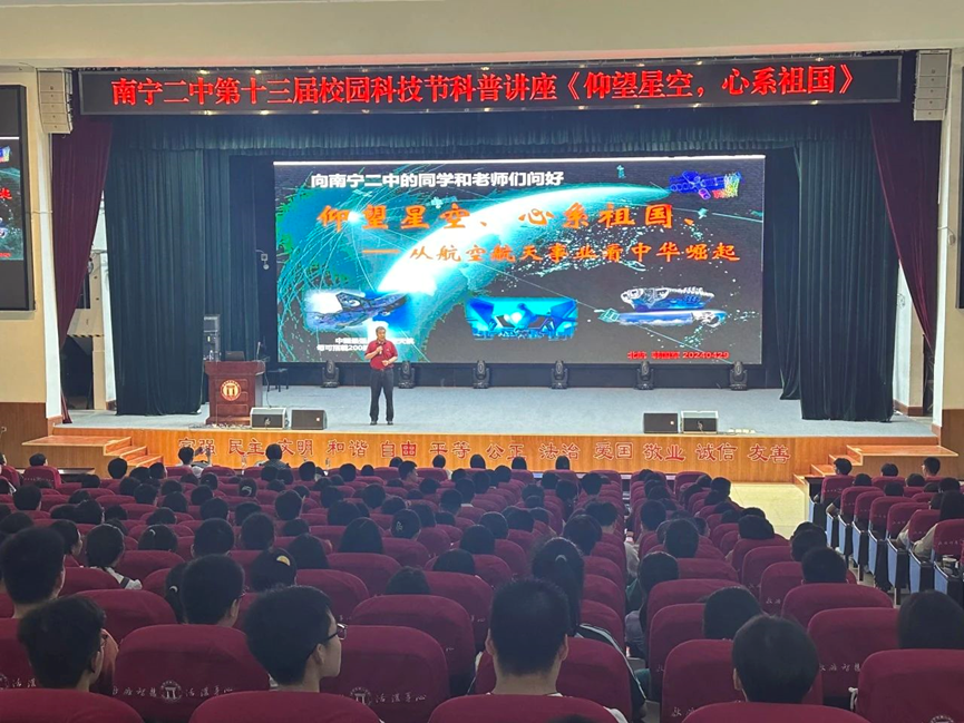 近日,北航广西招生组赴桂招生,北京航空航天博物馆首席专家、校关工委委员韩国军受邀参加相关工作。以《仰望星空,心系祖国——从航空航天事业看中华崛起》为主题,韩国军先后为北航优质生源基地校柳州高级中学、柳州铁一中学、南宁第二中学的高中生开展了航空航天科普讲座,三所学校的近5000名高中生通过线上或线下的方式聆听了讲座。