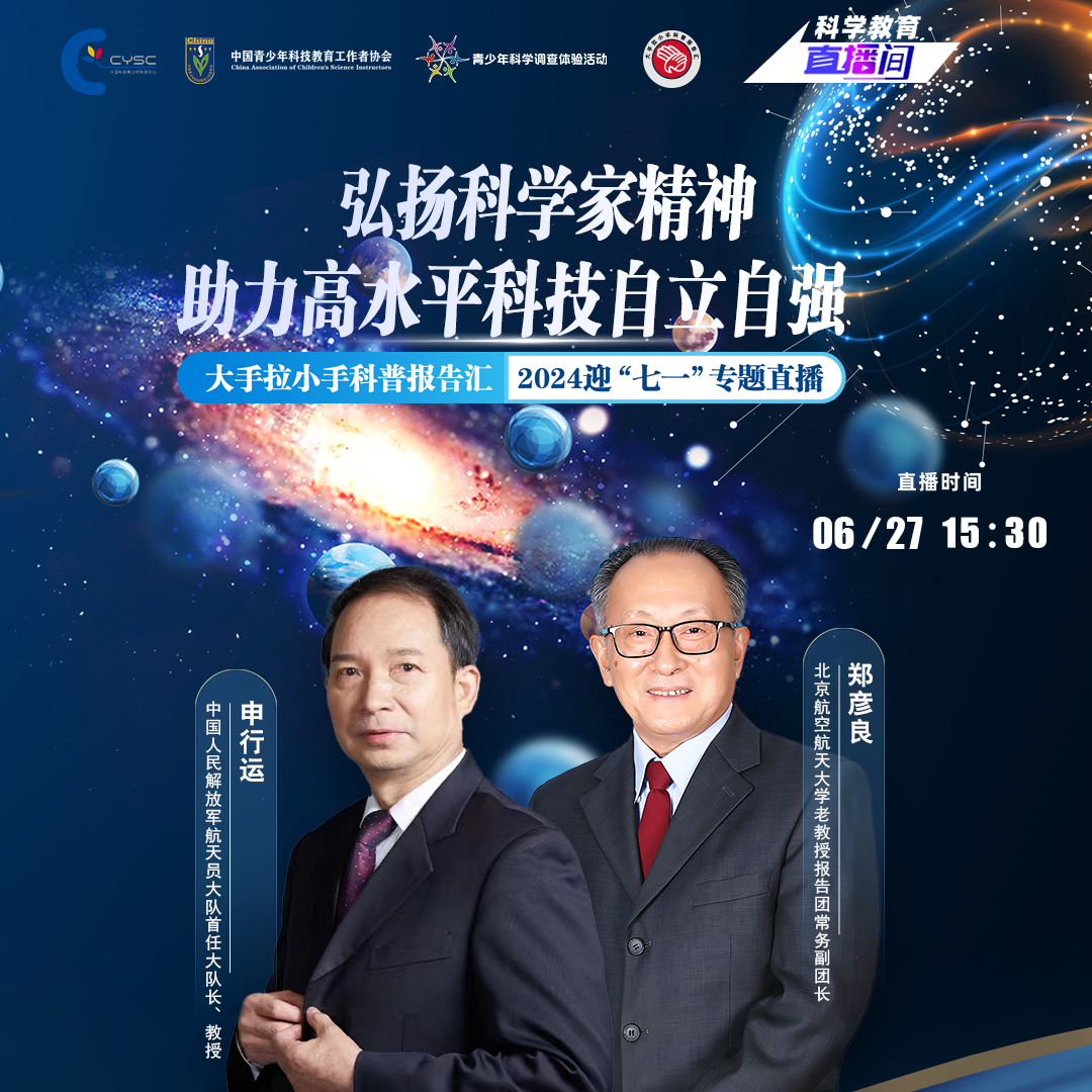6月27日下午,中国科协“大手拉小手科普报告汇”在《中国科技教育》杂志社“科学教育直播间”,举办“迎七一-弘扬科学家精神 助力高水平科技自立自强”专题直播节目。
