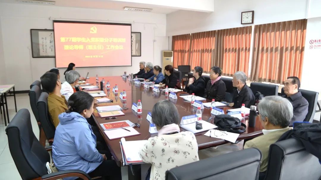 随后,学生工作部邵明英对第77期学生入党积极分子培训班的基本情况进行了汇报。本期共有51位理论导师(班主任),其中16位理论导师(班主任)是由老同志担任,分两个校区开展工作。本期培训主要包括日常理论学习、实践活动指导、实践答辩评审三大环节,其中实践环节涉及“书闻天下”读书活动、师生研讨课、班级特色实践等。邵明英表示,老师们有着深厚的理论水平、丰富的人生经历,希望大家继续发挥所长,协助学工部顺利完成本期培训任务。