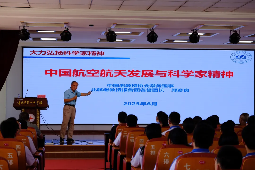 6月13日下午,北京航空航天大学郑彦良教授一行四人到访通化市第一中学校,为通化一中教育集团的师生带来主题为“中国航空航天发展与科学家精神”的专题讲座,讲述中国航空航天发展的辉煌历程与科学家精神的时代内涵。