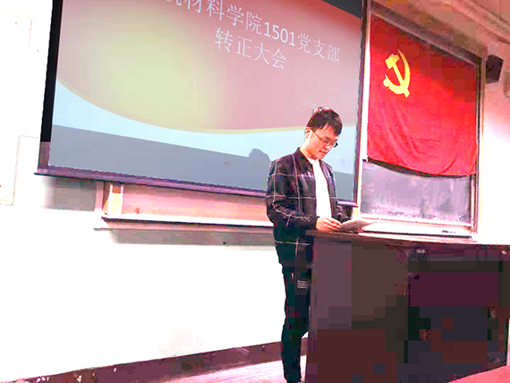 2018年11月12日晚,材料学院1501党支部召开新党员发展大会和预备党员转正大会,会议在学院路校区三号楼215教室进行,党建组织员张永安同志参加。