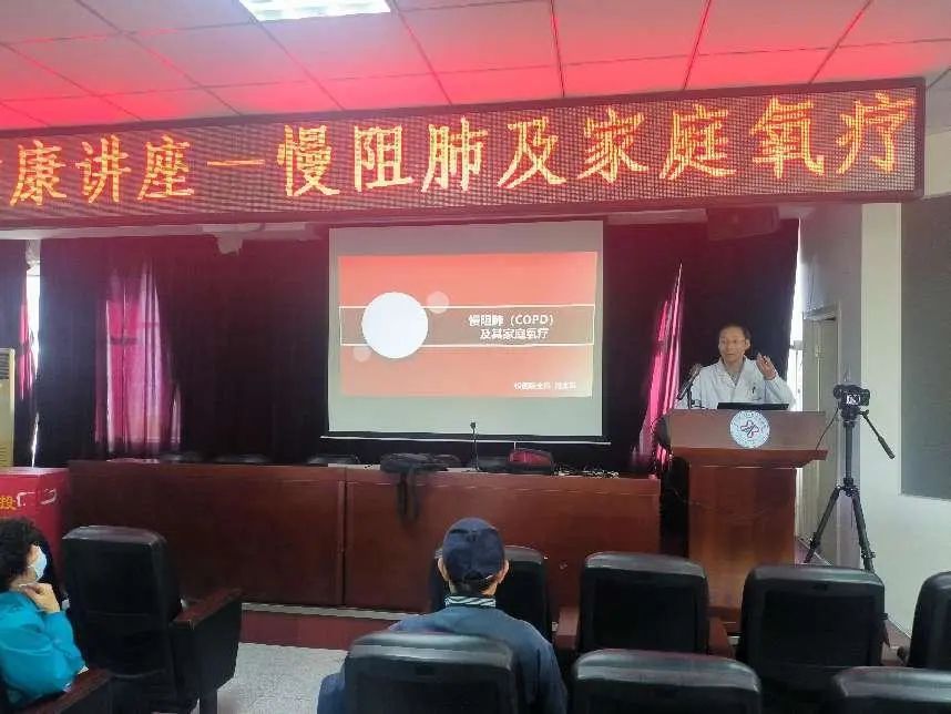 讲座伊始,冯医生通过一系列数据展示慢阻肺的死亡率和发病率。冯医生强调,慢阻肺除了与环境质量有关,与个体遗传因素和生活习惯也有很大关系,并指出家庭氧疗是缓解慢阻肺是一种十分有效的治疗方式,一定程度上减少急性发作住院次数,对患者的身体与经济情况都有较多好处。