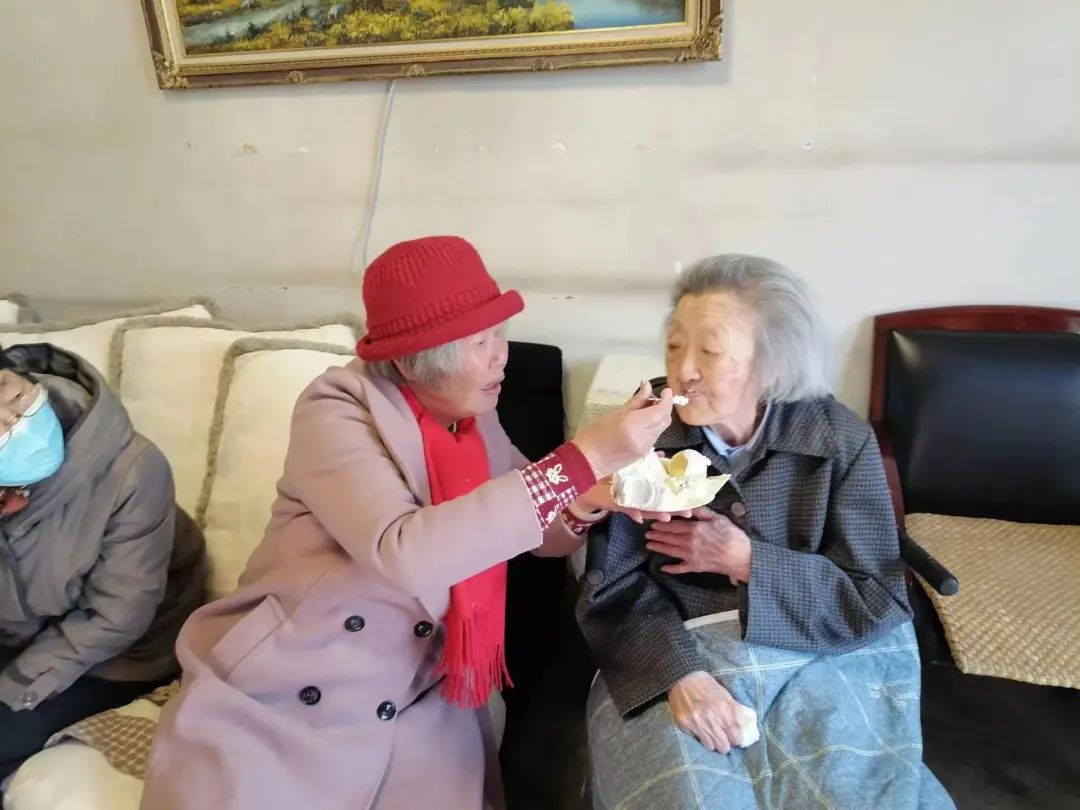 蛋糕吃进嘴里,甜味涌入心头,人生百岁不容易,是一件值得欢喜和祝贺的事。同志们衷心祝福金老师:生命之树常青,生命之花常艳,希望她再登长寿新台阶。