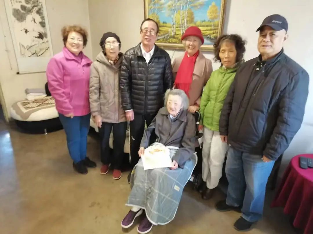 11月19日,日丽风清,图书馆退休支部的金英华老师,迎来了她的百岁寿诞。三位支委携支部的党员与群众代表前往金老师家中贺寿,为她送去生日祝福。