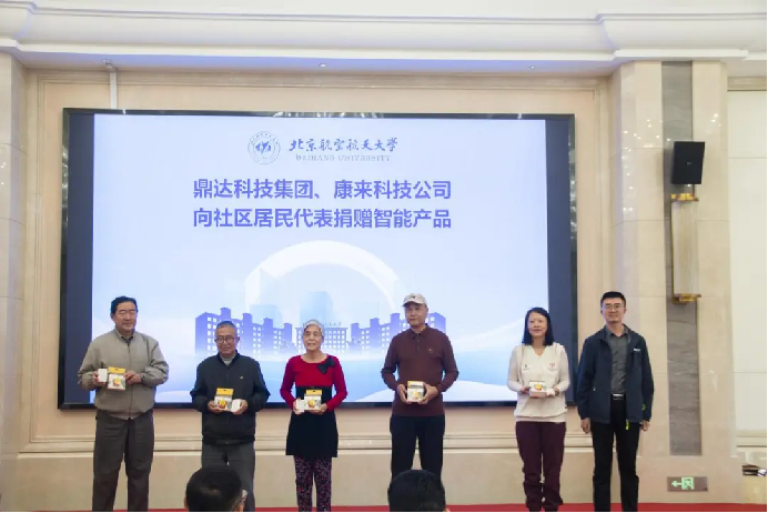 10月24日上午,鼎达科技集团、康来科技公司向北航社区捐赠智能养老产品暨北航智能养老社区建设启动仪式在校友之家一层多功能厅举行。校党委副书记程波,北京市民政局养老服务处副处长王小兵,海淀区民政局党组书记、局长王双全,花园路街道党工委书记高毅,校党委宣传部、校友联络发展处、校医院、365英国上市公司工作处、社区管理服务办公室、社区居委会、业委会等部门负责人,中国社会福利基金会、北京泰康溢彩公益基金会、中关村文化产业创新促进会、鼎达科技集团、康来科技公司等社会组织及企业负责人,以及80余位北航365英国上市公司教职工代表和社区居民代表参加仪式。仪式由北航社区管理服务办公室副主任田原主持。
