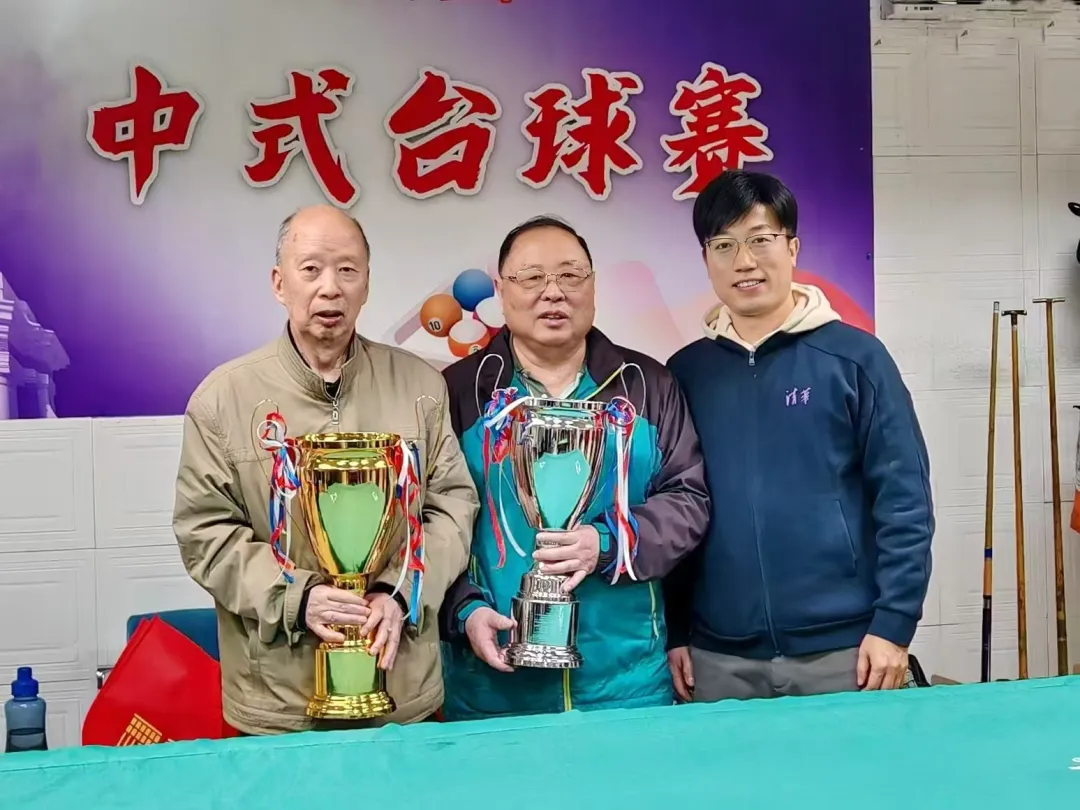 比赛在双方精心筹备下顺利进行,比赛过程中,老师们全力以赴,展现出了老同志们昂扬向上的精神面貌。北航台球协会的老师们最终获得了3个单打、3个双打项目的胜利,共计6分,以6:5的比分赢得了比赛,捧得了金杯。