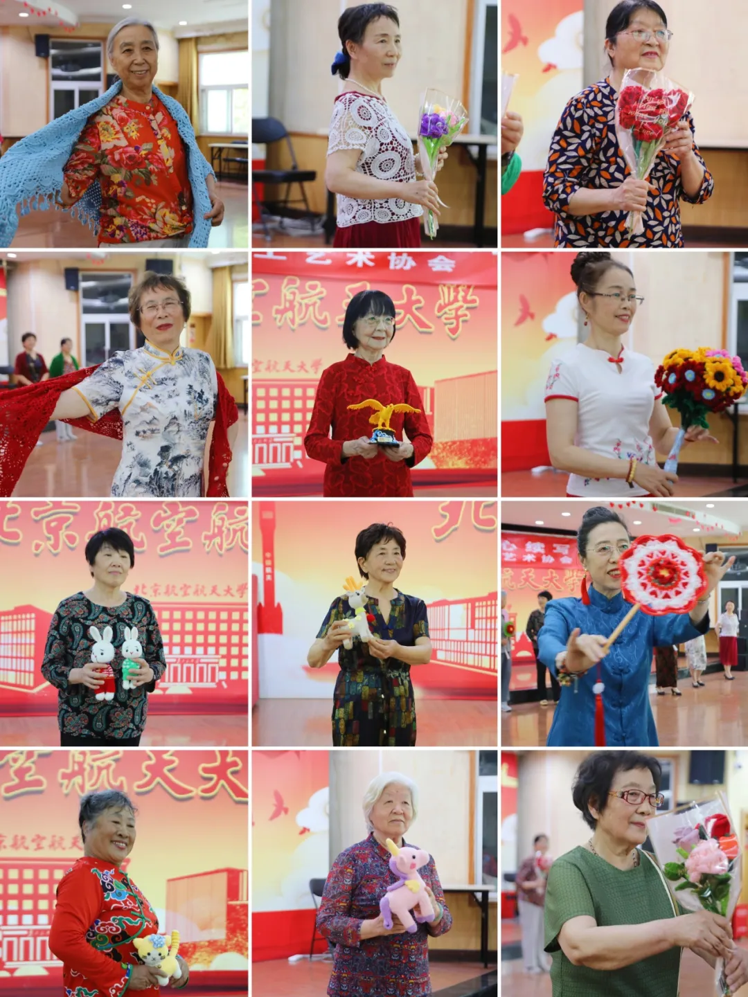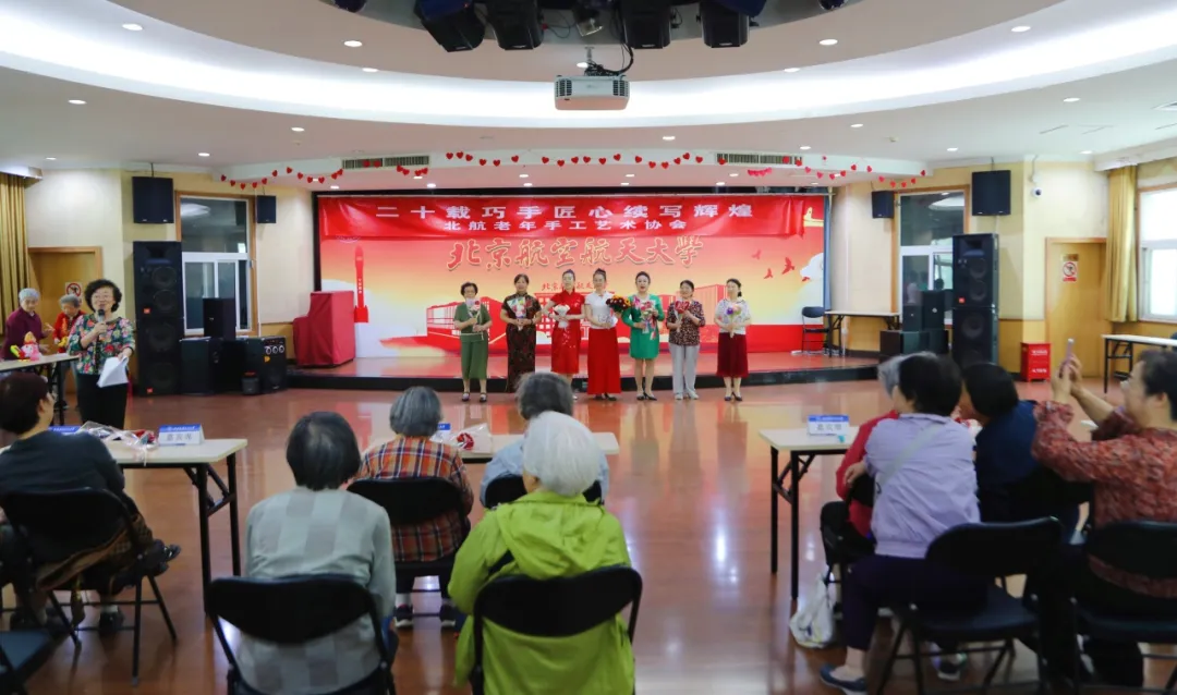 老同志们洋溢着自豪的微笑,热情地展示着独具匠心的工艺品,赢得现场观众的热烈掌声,将庆典氛围推到高潮。