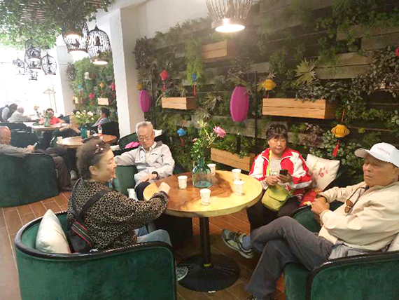 中午,大爱书院招待大家享用了丰盛的午餐,院方销售人员介绍了“机构养老”,“社区养老”,“居家养老”三种模式及其相应的优点和条件,并提出“全屋精装,拎包入住”,“可继承,可转让,三年可回购”等种种优惠。听到这里立即有几位老同志饶有兴趣地坐下来与养老院方面仔细商谈,有的是为儿女着想,有的是为朋友打听。