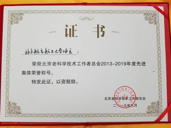 北航老科协被授予“2013—2019年度先进集体”荣誉称号。