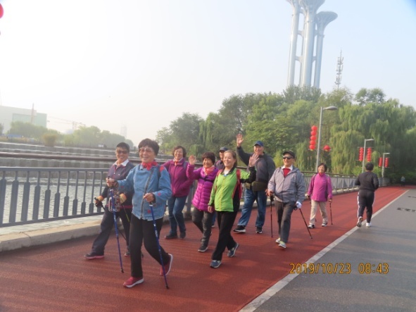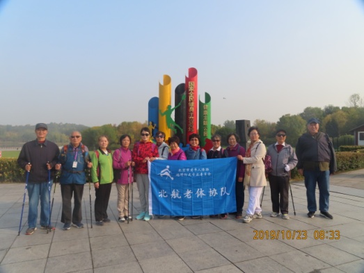10月23日,天气晴朗、晚秋气爽,北航老年体协越野行走协会组织会员到奥林匹克森林公园进行“健步迈进新时代”持杆健步走活动。